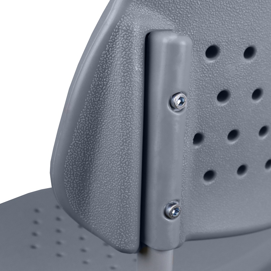 Комплект включает в себя: Пластиковую спинку и пластиковое сиденье из "дутого" антивандального пластика, две пластиковые планки для крепления сиденья к каркасу, каркас Bocca цельносварной регулируемый. Ростовая группа 4-6 (380-460 мм), 5-7 (420-500 мм).