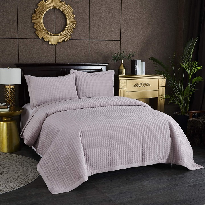 Компоненты, входящие в комплект: Наволочка: 50x70, 1 шт, пудровый Покрывало: 160x220, пудровый.