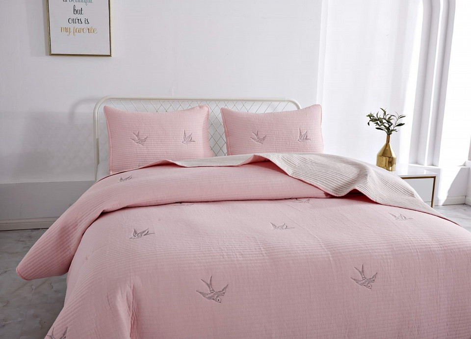Компоненты, входящие в комплект: Наволочка:, 50x70, розовый Покрывало:, 160x220, белый, розовый.