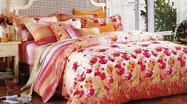 Компоненты, входящие в комплект: Наволочка:, 50x70+5, 2 шт, оранжевый, розовый, 70x70+5, 2 шт, оранжевый, розовый Пододеяльник:, 180x215, оранжевый, розовый Простыня:, 200x220, оранжевый, розовый.