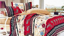 Компоненты, входящие в комплект: Наволочка:, 50x70, 2 шт, бежевый, красный, 70x70, 2 шт, бежевый, красный Пододеяльник:, 180x215, бежевый, красный Простыня:, 200x220, бежевый, красный.