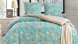 Компоненты, входящие в комплект: Наволочка: , 70x70 см, 2 шт, бирюзовый Пододеяльник: , 175x215 см, бирюзовый Простынь: , 200x220 см, бирюзовый.