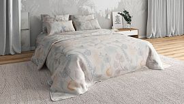 Компоненты, входящие в комплект: Наволочка:, 70x70 см, 2 шт, бежевый, оранжевый, серый Пододеяльник:, 180х215 см, 1 шт, бежевый, оранжевый, серый Простынь:, 200х220 см, 1 шт, бежевый, оранжевый, серый.