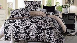 Компоненты, входящие в комплект: Наволочка:, 70x70 см, 2 шт, белый, розовый, черный Пододеяльник:, 180x215 см, 1 шт, белый, розовый, черный Простынь:, 200x220 см, 1 шт, розовый.