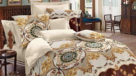 Компоненты, входящие в комплект: Наволочка:, 70х70, 2 шт, бежевый, белый Пододеяльник:, 180х215, бежевый, белый Простыня:, 200х220, бежевый, белый.