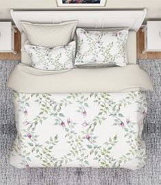 Компоненты, входящие в комплект: Наволочка:, 50x70 см, 2 шт, бежевый, белый, зеленый, 70x70 см, 2 шт, бежевый Пододеяльник:, 180x215 см, 1 шт, бежевый, белый, зеленый Простынь:, 200x220 см, 1 шт, бежевый.