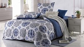 Компоненты, входящие в комплект: Наволочка:, 70x70 см, 2 шт, белый, синий Пододеяльник: 180x215 см, белый, синий Простыня: 200x220 см, синий.