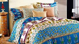 Компоненты, входящие в комплект: Наволочка:, 70x70, 2 шт, бежевый, синий Пододеяльник:, 150х215, бежевый, синий Простыня:, 160х220, бежевый, синий.