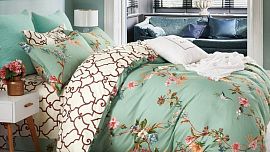 Компоненты, входящие в комплект: Наволочка:, 70х70, 2 шт, бежевый, светло-зеленый Пододеяльник:, 150х215, бежевый, светло-зеленый Простыня:, 160х220, бежевый.