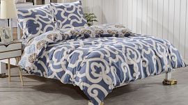 Компоненты, входящие в комплект: Наволочка:, 50x70, 2 шт, белый, синий Пододеяльник:, 150х215, белый, синий Простыня:, 150х215, белый, синий.