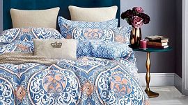 Компоненты, входящие в комплект: Наволочка:, 50x70, 2 шт, бежевый, голубой Пододеяльник:, 150х215, бежевый, голубой Простыня:, 150х215, бежевый, голубой.
