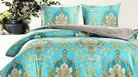 Компоненты, входящие в комплект: Наволочка:, 50x70, 2 шт, бежевый, бирюзовый Пододеяльник:, 150х215, бежевый, бирюзовый Простыня:, 150х215, бежевый, бирюзовый.