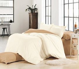 Компоненты, входящие в комплект: Наволочка:, 70x70, 2 шт, бежевый, белый Пододеяльник:, 150х215, бежевый, белый Простыня:, 160х220, бежевый, белый.