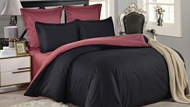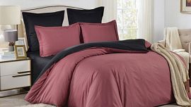 Компоненты, входящие в комплект: Наволочка:, 70x70, 2 шт, бордовый Пододеяльник:, 150x215, бордовый, черный Простыня:, 160x220, бордовый.
