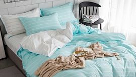 Компоненты, входящие в комплект: Наволочка:, 50х70, 1 шт, белый, голубой Пододеяльник:, 150х215, белый, голубой Простыня:, 150х215, белый, голубой.