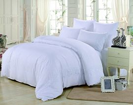 Компоненты, входящие в комплект: Наволочка: , 70x70 см, 2 шт, белый Пододеяльник: , 150x215 см, белый Простыня: , 160x220 см, белый.