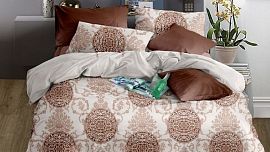 Компоненты, входящие в комплект: Наволочка:, 70x70, 2 шт, белый, коричневый Пододеяльник:, 150х215, белый, коричневый Простыня:, 160х220, белый, коричневый.