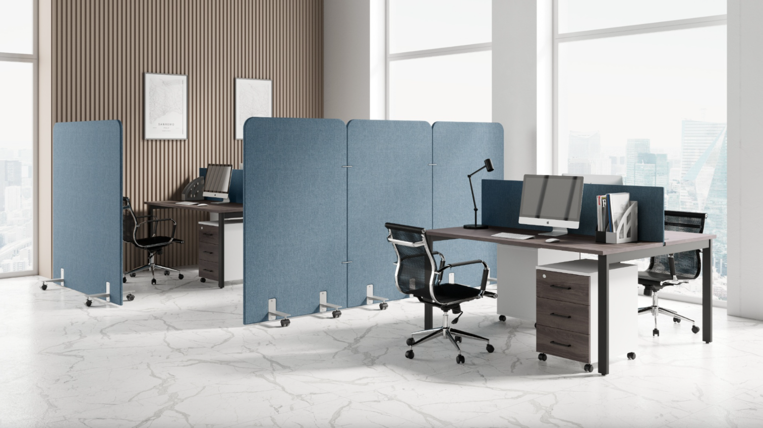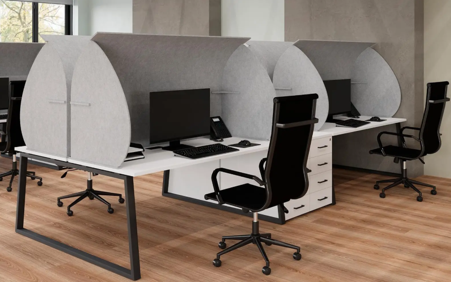 Футуристичный подход к зонированию позволил достичь максимального снижения уровня фонового шума — до 80%. Панели отличаются модульной конструкцией, что позволяет быстро зонировать open-space пространства.